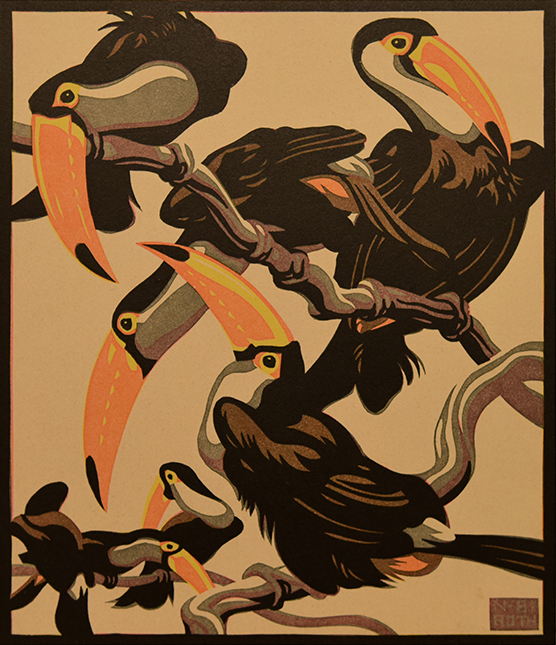 1. Pfefferfresser, Linolschnitt, 31.5 cm x 24.5 cm