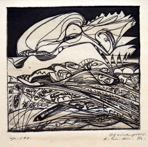 1. Op.130, 1915, abstaction, etching, signed and dated. Plate: 16.5 to 15.5 cm |
