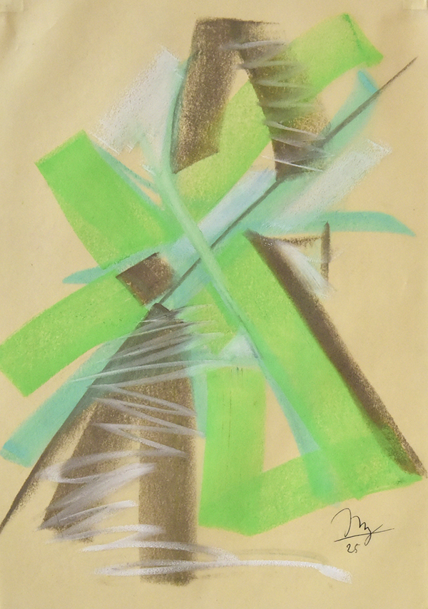 7. Abstrakte Figuration, 1925, farbige Kreide, monogrammiert und datiert. Auf Transparentpapier, 29,8 x 21 cm 7. Abstrakte Figuration, 1925, colored chalk, monogrammed and dated. Transparent paper, 29,8 x 21 cm